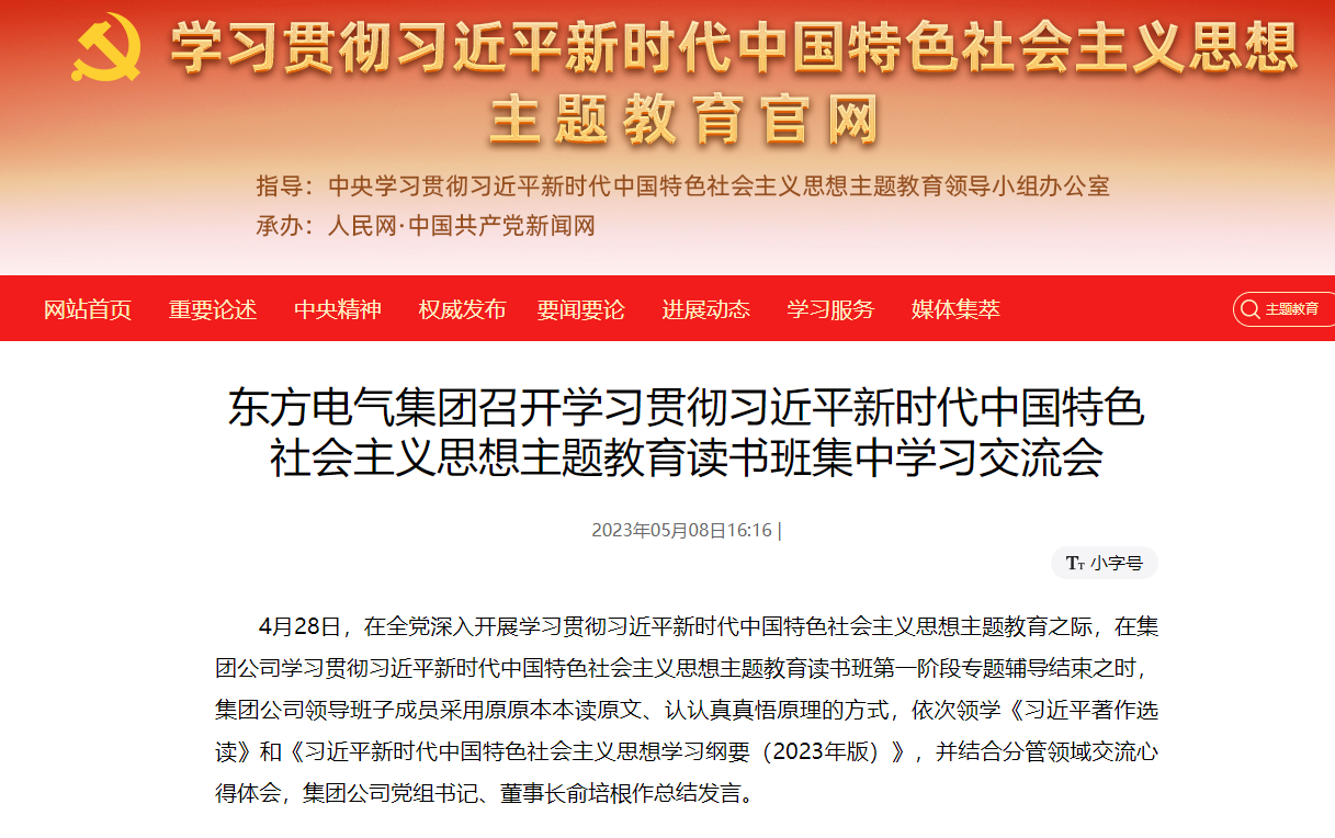 4月28日,在全党深入开展学习贯彻席大大新时代中国特色社会主义思想主题教育之际,在集团公司学习贯彻席大大新时代中国特色社会主义思想主题教育读书班第一阶段专题辅导结束之时,集团公司领导班子成员采用原原本本读原文、认认真真悟原理的方式,依次领学《席大大著作选读》和《席大大新时代中国特色社会主义思想学习纲要(2023年版)》,并结合分管领域交流心得体会,集团公司党组书记、董事长俞培根作总结发言。